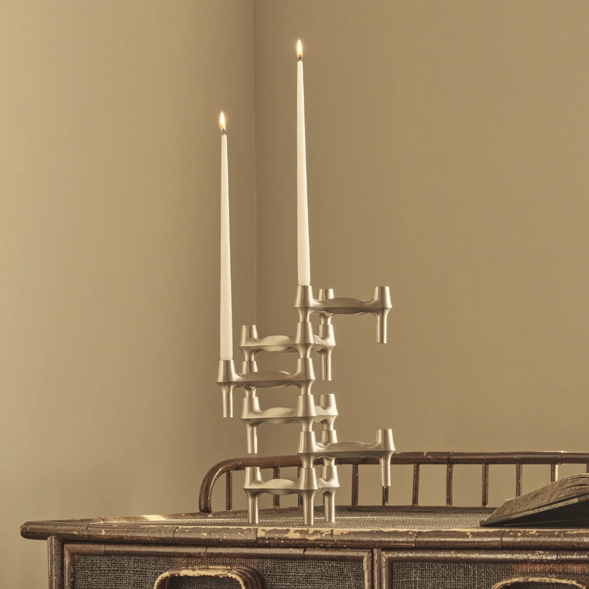 Le bougeoir BMF de Stoff Nagel est un design emblématique des années 60. Le corps se compose d'un design empilable à trois pieds qui déploie son effet dans une ambiance moderne. Les bougeoirs peuvent être complétés par les bougies de votre choix et attirent ainsi l'attention sur chaque étagère ou table. Les bougeoirs sont disponibles individuellement ou en sets et peuvent ainsi être combinés pour former une composition individuelle.